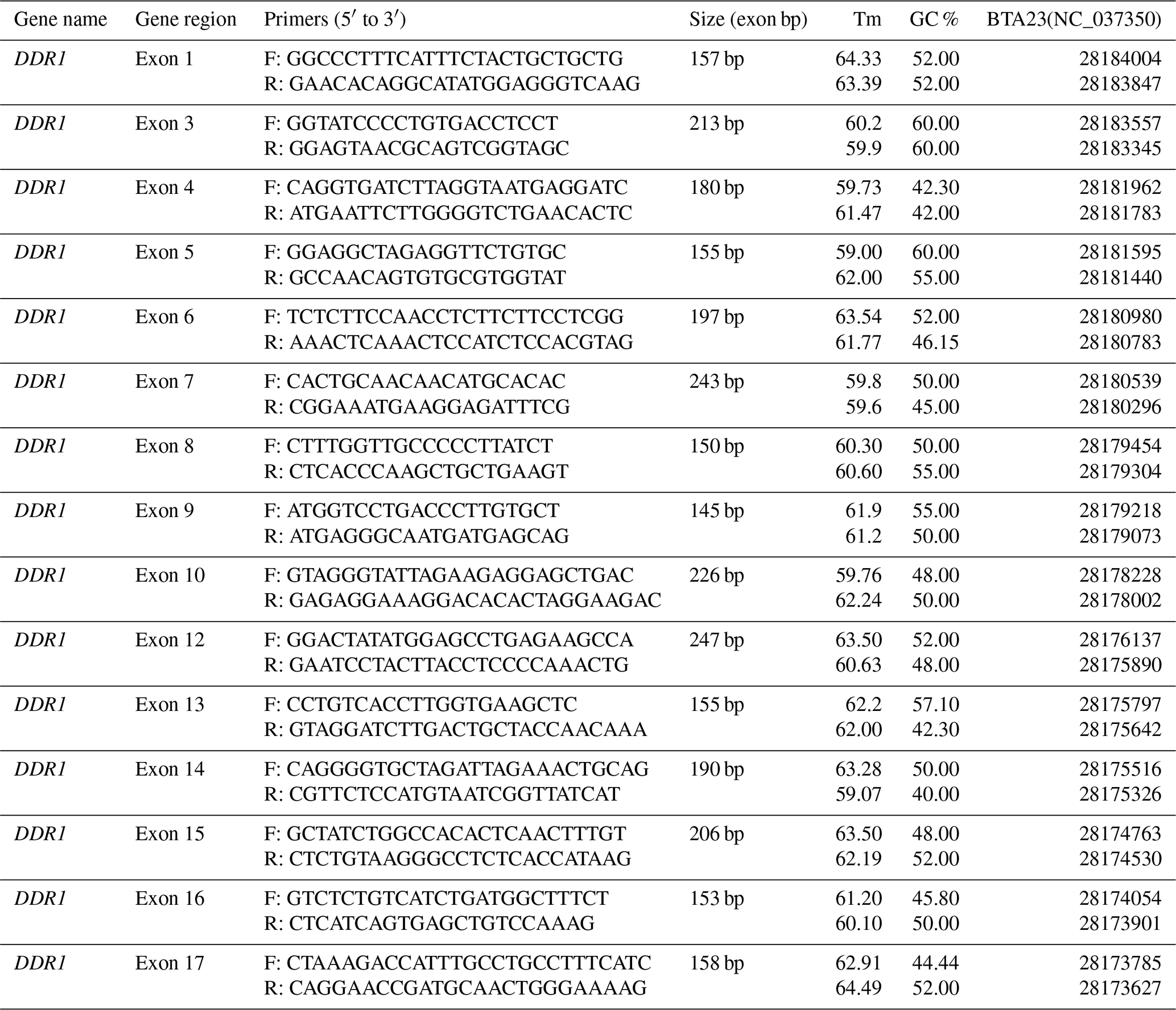 Table 1Primer sequences designed for the DDR1 gene regions.
