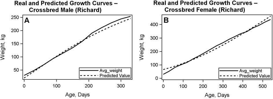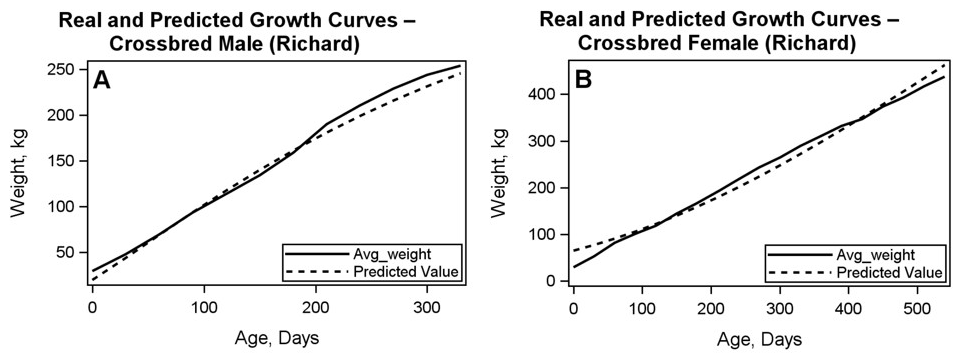 The prediction of the Richard model for female F1 crossbred cattle is as follows: