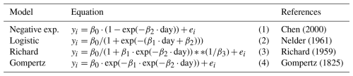 Richard, F. J.: A flexible growth function for empirical use, J. Exp. Bot., 10, 290–300, https://doi.org/10.1093/jxb/10.2.290, 1959.
