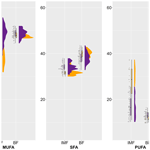 With a mean of 13 %, the proportion of PUFAs was lower than in IMF. This class was again dominated by linoleic acid (10 %) but by a slightly higher share of n−3 fatty acids (Table 2).