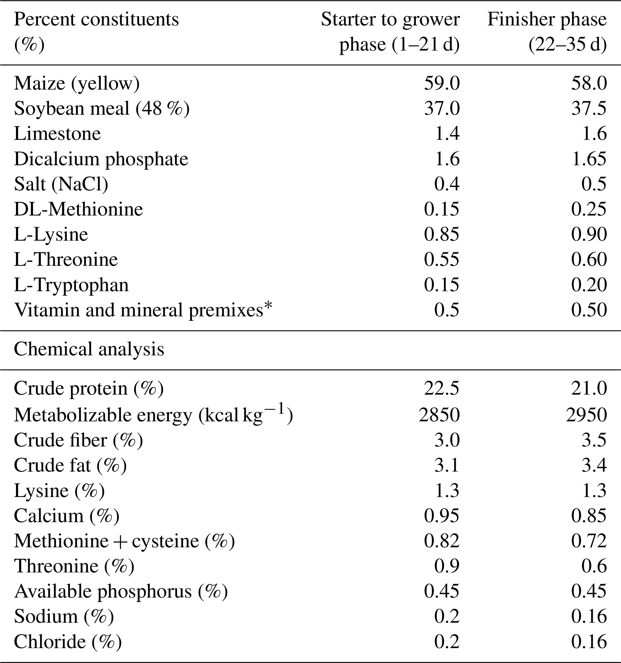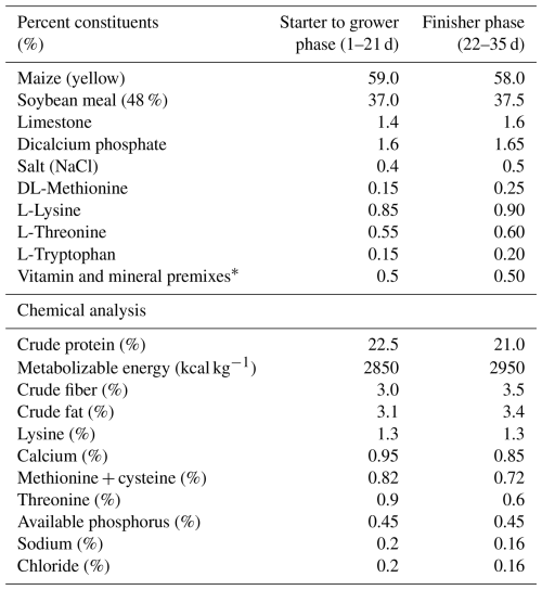Table 1Ingredients and feed composition of broilers on dry matter basis.