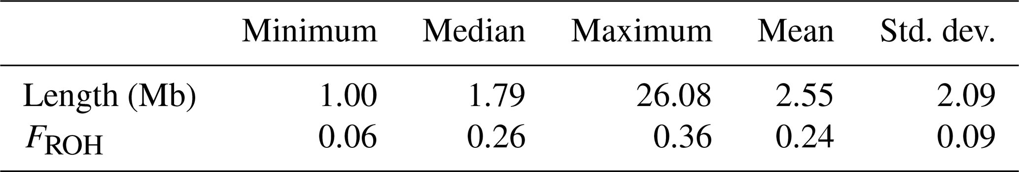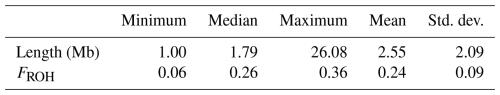 Table 1Descriptive statistics of ROH numbers and FROH values in the LW pig population.