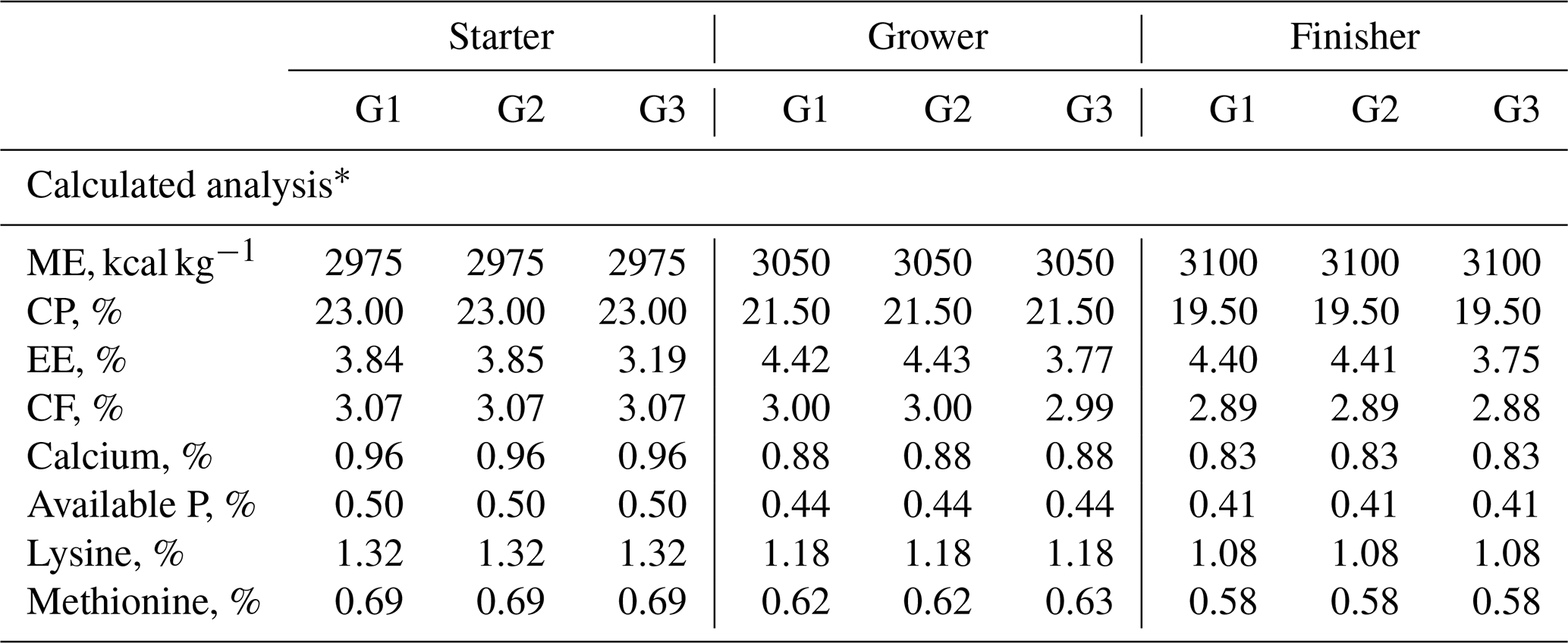 ∗ ME denotes metabolic energy. CP denotes crude protein. EE denotes ether extract. CF denotes crude fibre.